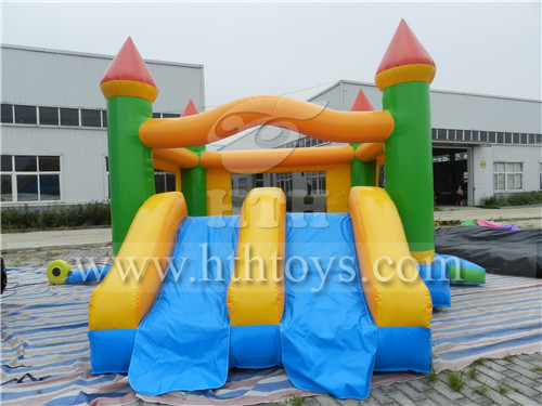 We are factory in China to make the inflatable bouncy castle,all of our inflatable bouncy caslte use 0.55mm PVC (from Plato ).Our inflatable bouncy castle was export to USA,UK,Italy,Spain,Germany,Dubai ,Russia and so on,they are popular with clients and kids, we have EN14960 Certification.